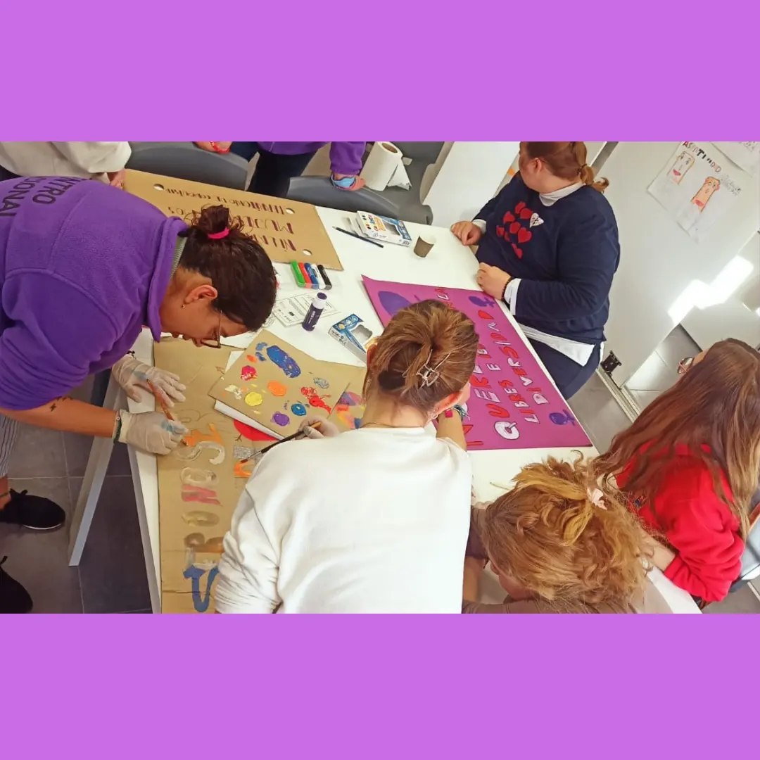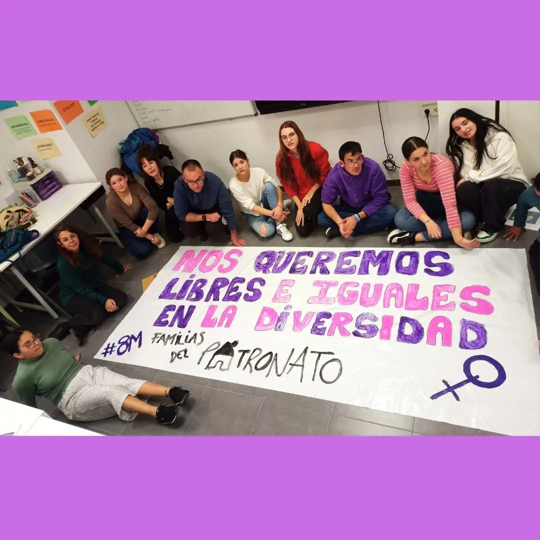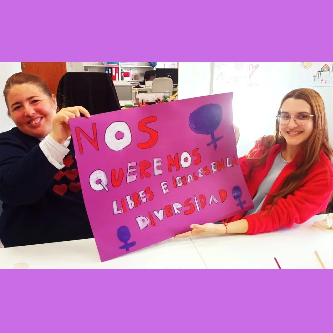 Durante los miércoles del mes de febrero y de la primera semana de marzo hemos trabajado codo con codo con las personas con discapacidad intelectual del Patronato de Paterna la preparación del 8M y su participación en la manifestación en Valencia del Día Internacional de la Mujer. Para ello incorporamos la perspectiva de género, el diseño de la línea violeta e histórica de la lucha de las mujeres, las reivindicaciones políticas y sociales de sus derechos humanos hasta llegar a la creación de slogans y lemas que llevara la pancarta colectiva y las individuales.