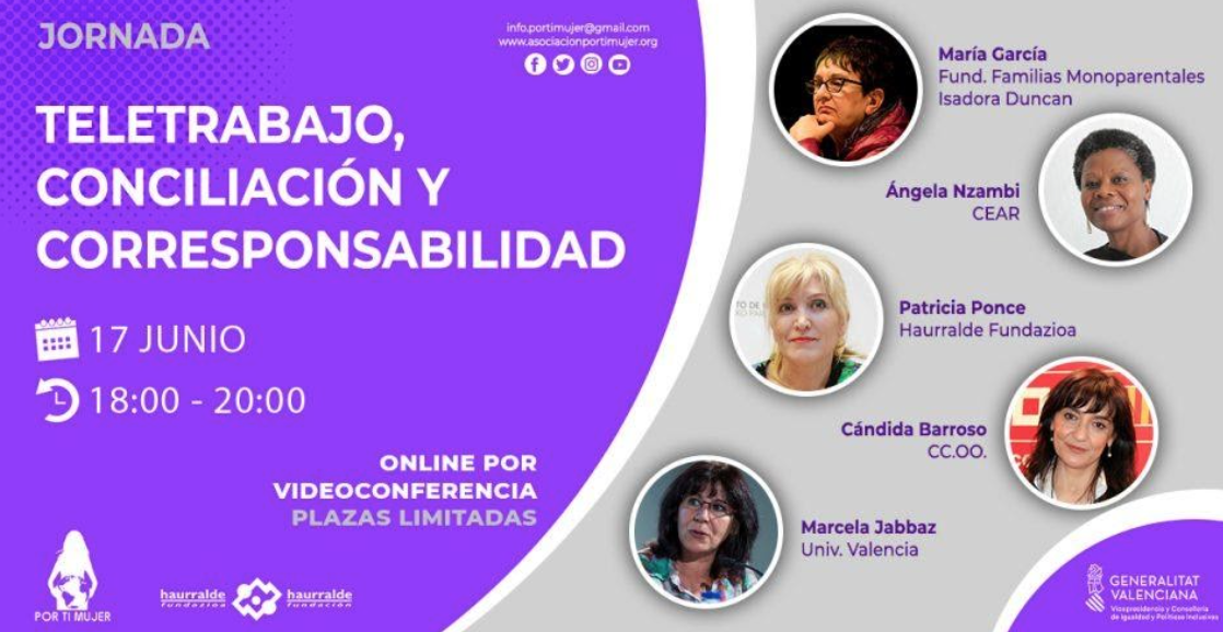 El Área de Coeducación, Igualdad y prevención de Violencia de Género de Infàncies i Dones del Món junto con la Asociación Por Ti Mujer, programan la webinar Teletrabajo, conciliación y corresponsabilidad, realizada el 17 de junio de 2020. El encuentro profundiza acerca de los factores de riesgo y el impacto del Covid-19 sobre la conciliación y la corresponsabilidad, desde un enfoque de género. Este espacio permitirá debatir sobre medidas que se podrían aplicar para hacer