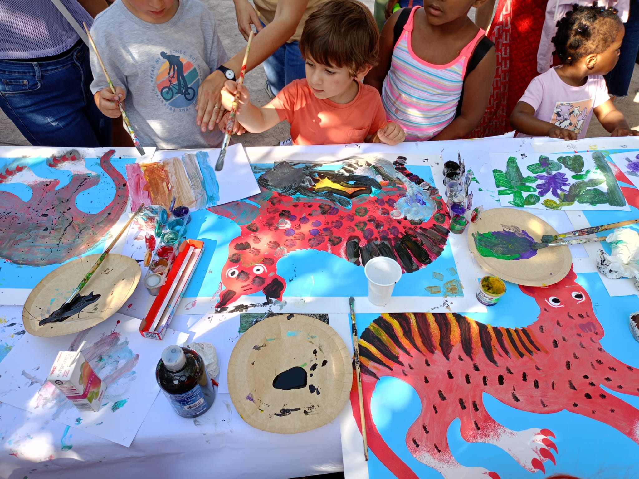 Asimismo, el 31 de mayo realizamos el taller Mariposas que vienen del mar en solidaridad con la infancia palestina. Para finalizar, el 1 de junio desarrollamos el taller de pintura Recordemos al desaparecido tigre de Tasmania para sensibilizar acerca del cuidado y protección otros seres vivos del planeta.